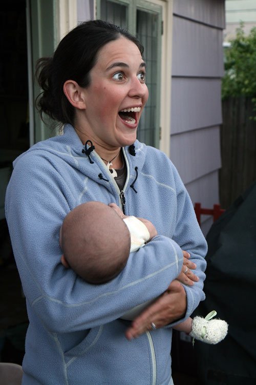 Incidentally, I'm wearing a band-aid in this picture because I have a paper cut also... I was trying to read one of my cooking magazines while holding Jack. He managed to kick his feet in just such a way as to grate the edge of the page against my finger. He certainly has busy little feet.